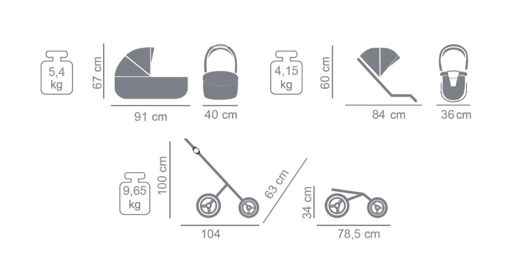 - Acabado de tela de alta calidad en el delantal y la capota del capazo.