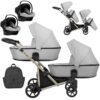 Carrito Bebé Kunert Brav Dúo Gemelar Chasis Champagne 2 o 3 en 1