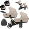 Carrito Bebé Kunert Brav Dúo Gemelar Chasis Champagne 2 o 3 en 1
