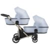- Capazo Brav Dúo x 2, con un parasol UV50 cosido en la capota de la góndola (protege de los rayos UV).