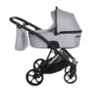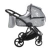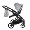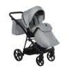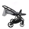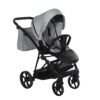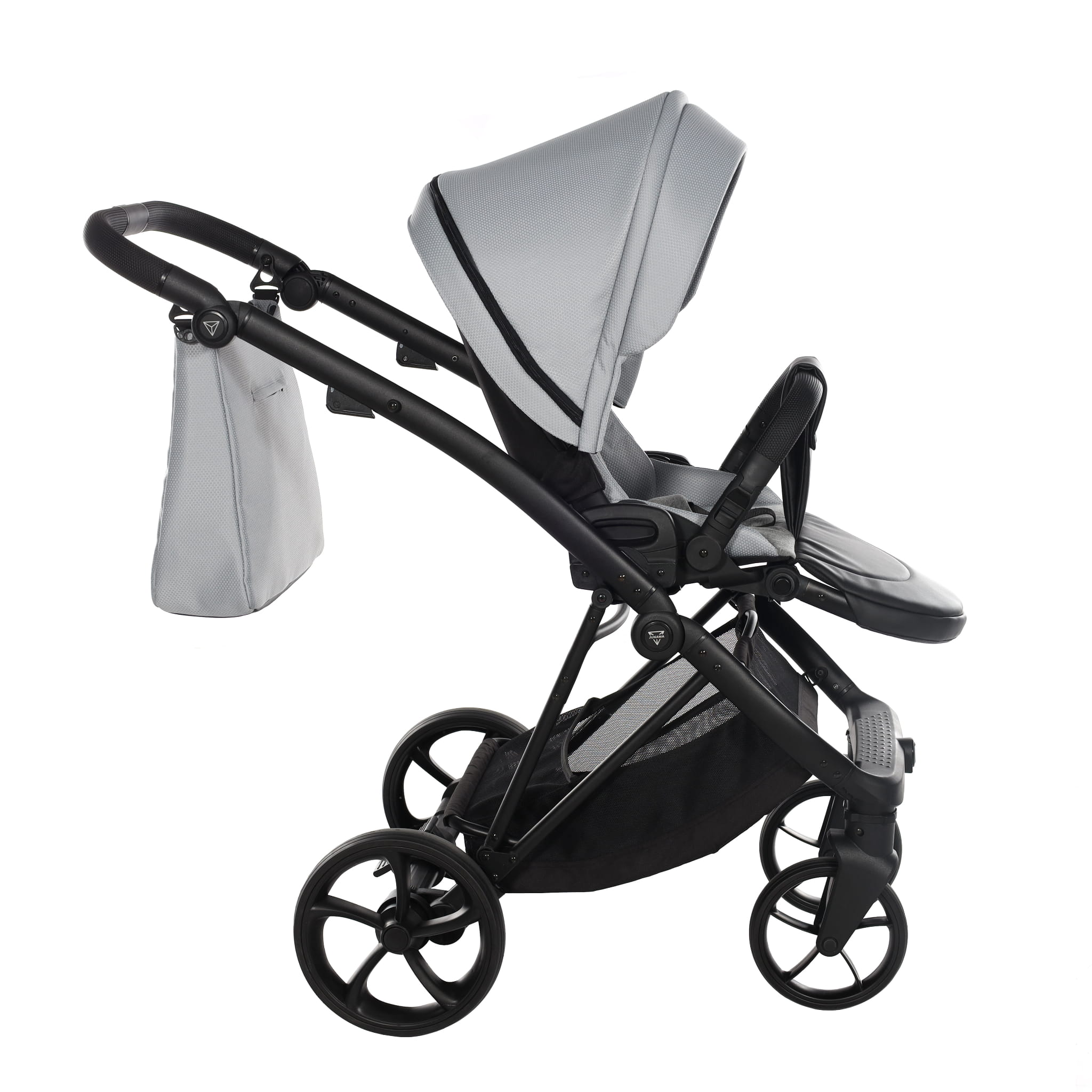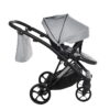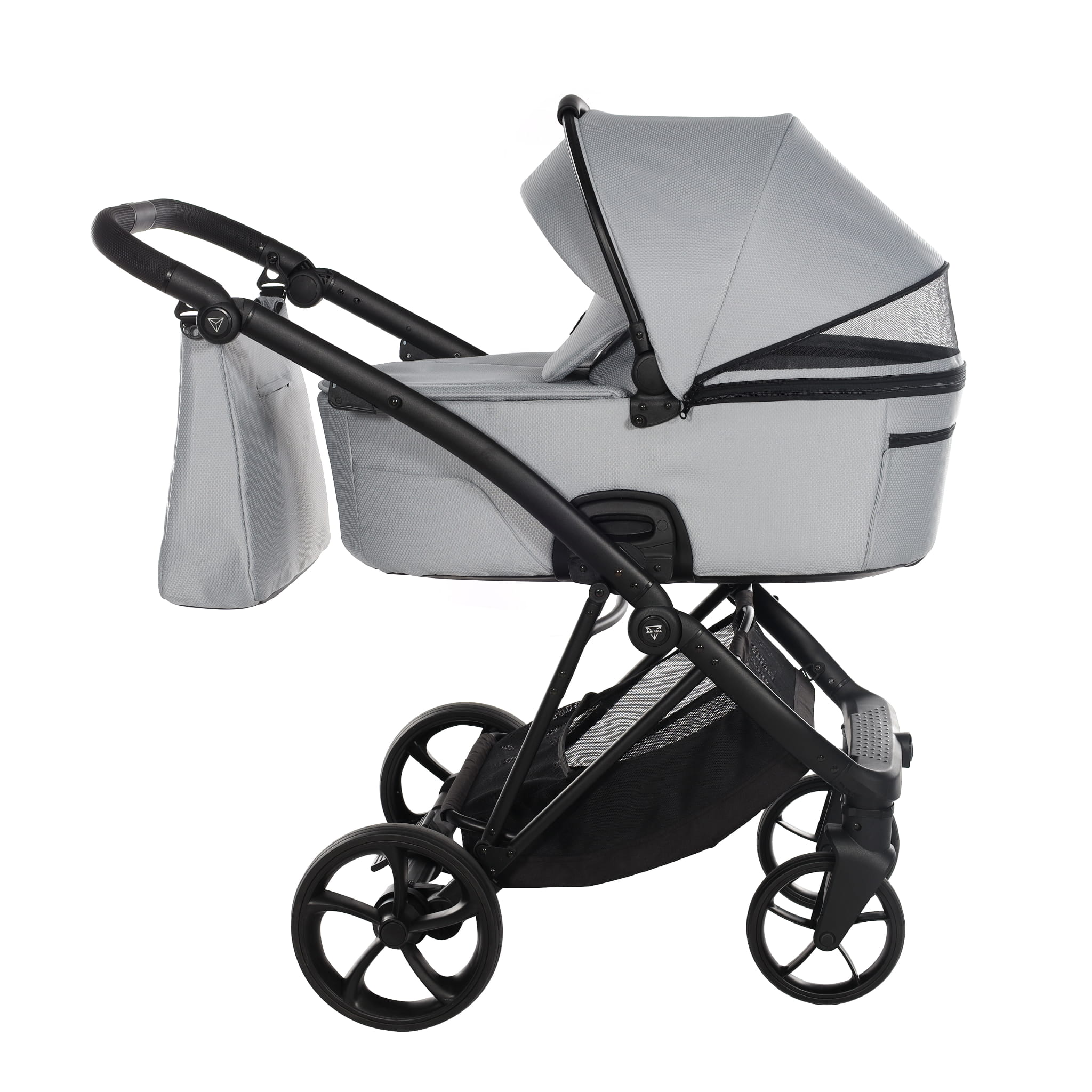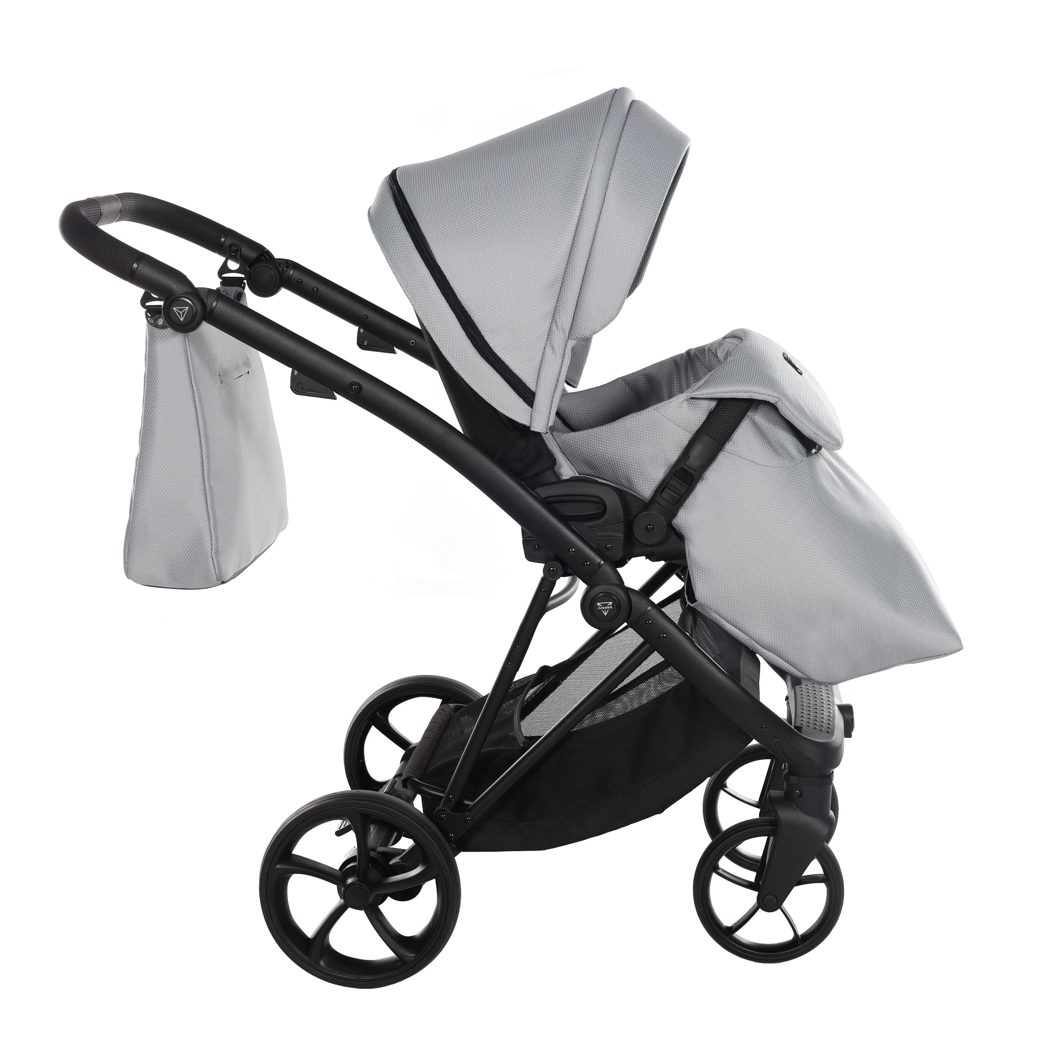 El chasis de aluminio viene con una excelente suspensión, un gran cesto de compras y ruedas de liberación rápida. Diseñado con 6 amortiguadores que hacen que el cochecito sea extra cómodo y suave. El fiable sistema de liberación de suspensión delantera absorbe los golpes del suelo y los impactos frontales, por ejemplo, al golpear el bordillo. El chasis está diseñado con un amortiguador ajustable separado, asegurando una dirección ágil en todo tipo de terrenos.