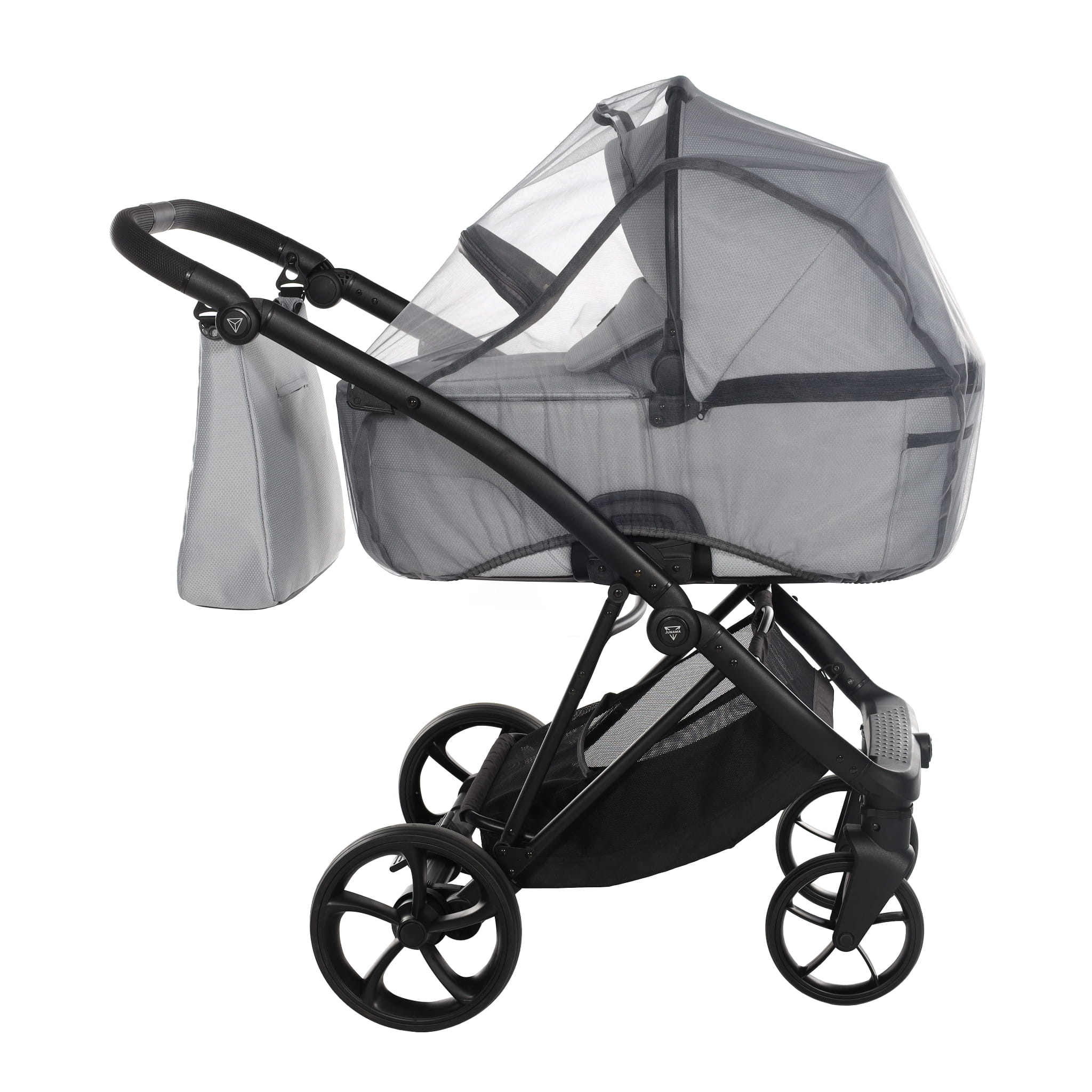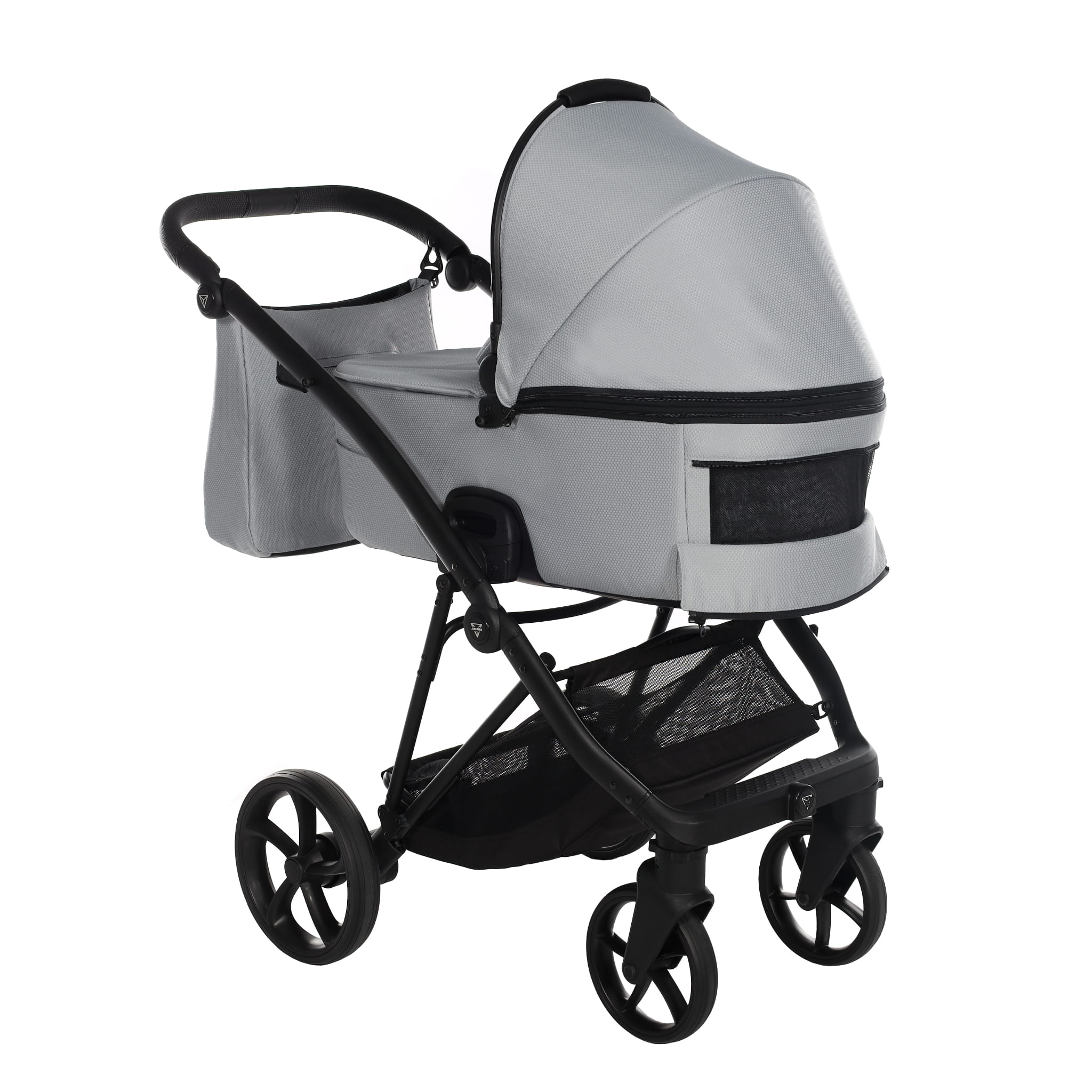 Chasis, capazo Diamond, arnés de seguridad para capazo, silla de paseo, cubrepies, bolso cambiador de lujo, colchoneta cambiadora, plástico de lluvia, mosquitera, portavasos. Además de manera opcional puedes añadir el portabebe grupo 0+ para el coche.