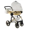 El Cochecito Enzo presenta un hermoso bordado, rematado con hilo de lurex para un toque elegante. Este impresionante cochecito, con su diseño de capazo en forma de diamante, está disponible en una variedad de combinaciones de colores: rosa-plata, negro-oro, blanco-oro y cobre-blanco. ¡Elige el color que mejor se adapte a tu estilo y prepárate para pasear con elegancia!