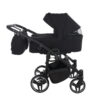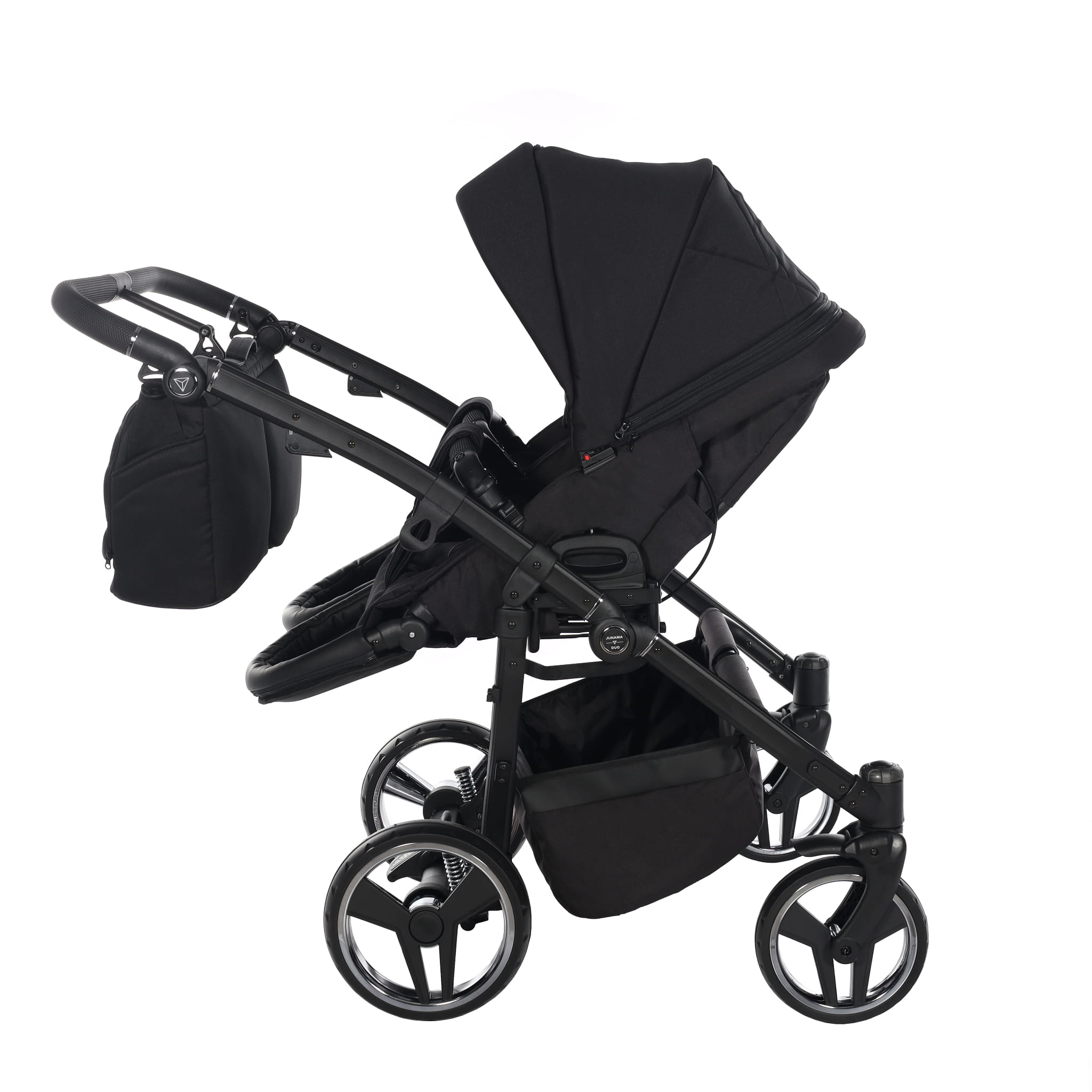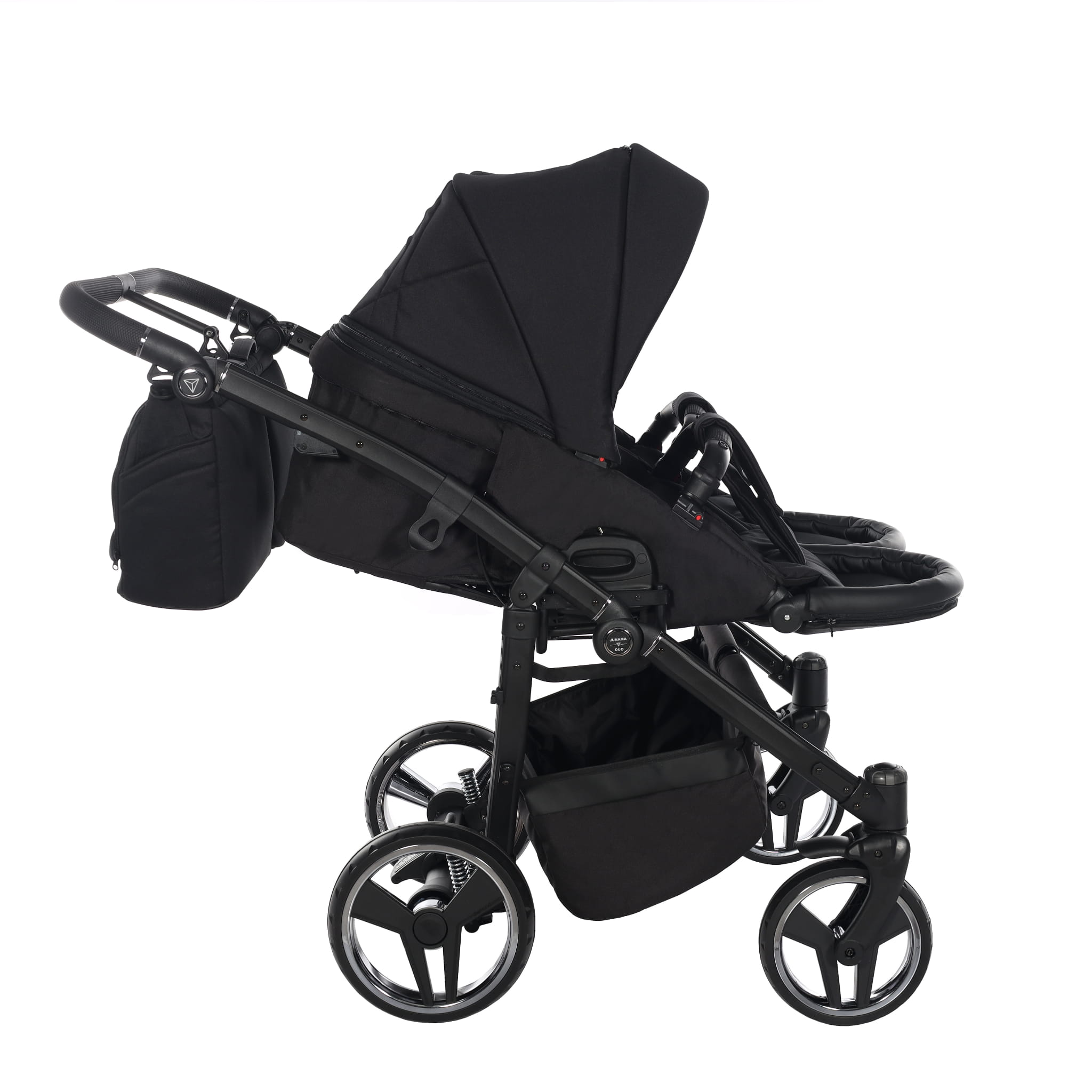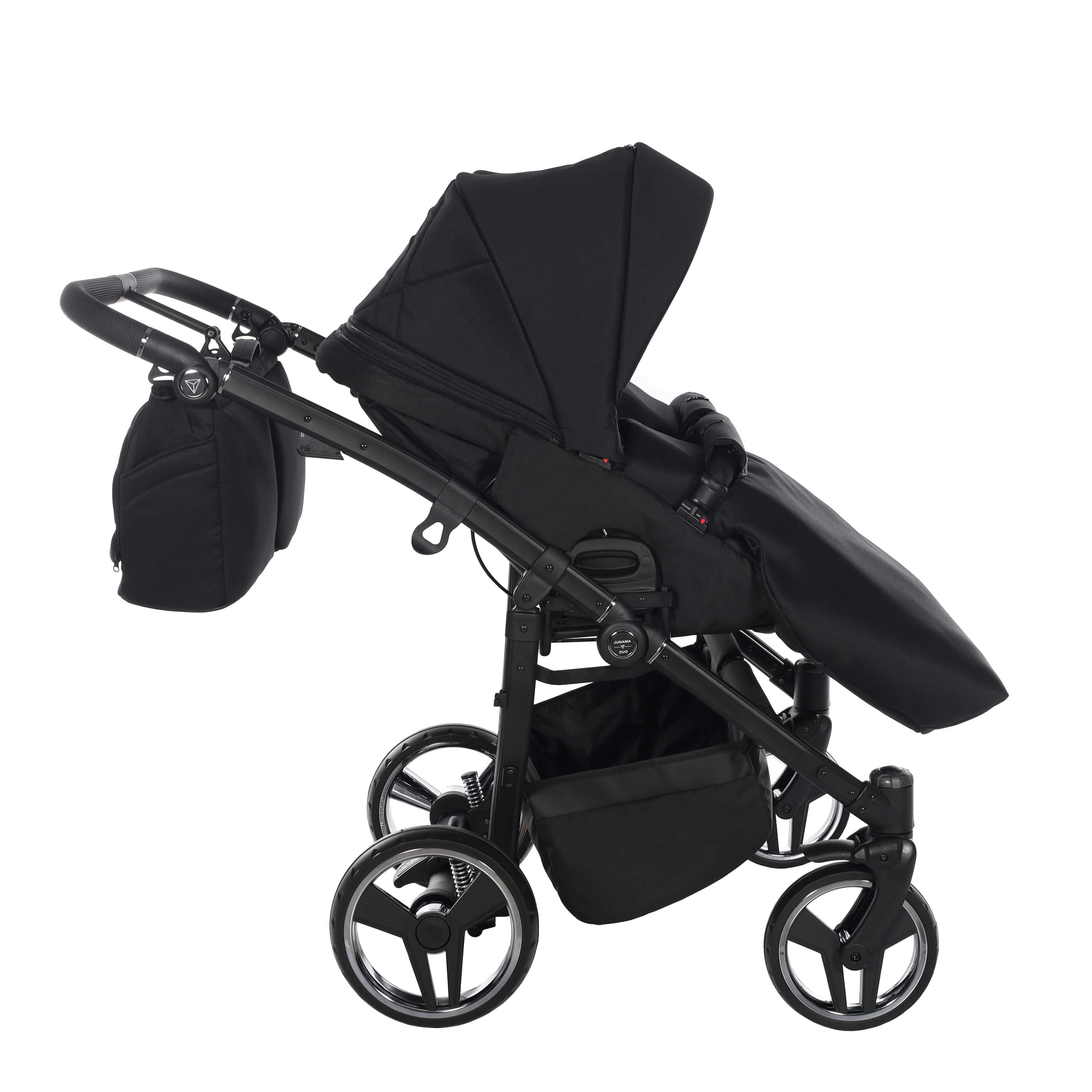 El chasis de aluminio viene con una suspensión excelente, una gran cesta de la compra y ruedas de liberación rápida. Diseñado con 6 amortiguadores que hacen que el cochecito sea extra cómodo y suave. El fiable sistema de liberación de suspensión delantera absorbe los golpes del suelo y los impactos frontales, por ejemplo, al golpear el bordillo.