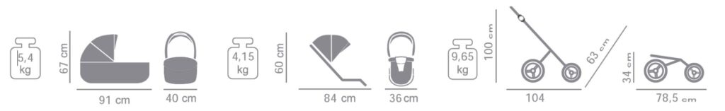 Juego 3 en 1: se añade la silla de coche de color a juego y los adaptadores para poder llevarla en el carrito.