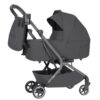 Cochecito universal ultraligero y resistente con un innovador plegado compacto junto con el capazo. Adecuado para paseos diarios y viajes. El tamaño y el peso cumplen con las normas de equipaje de mano.