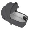 Sin retirar el capazo, tire de la palanca especial situada en el lado exterior del cabecero para desbloquearlo y pliéguelo por la mitad hasta que haga clic.