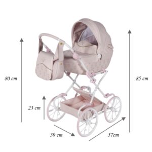 Este adorable y elegante cochecito de muñecas estimula la imaginación, fortalece los vínculos emocionales y contribuye al desarrollo de habilidades sociales, cognitivas y motoras.