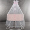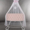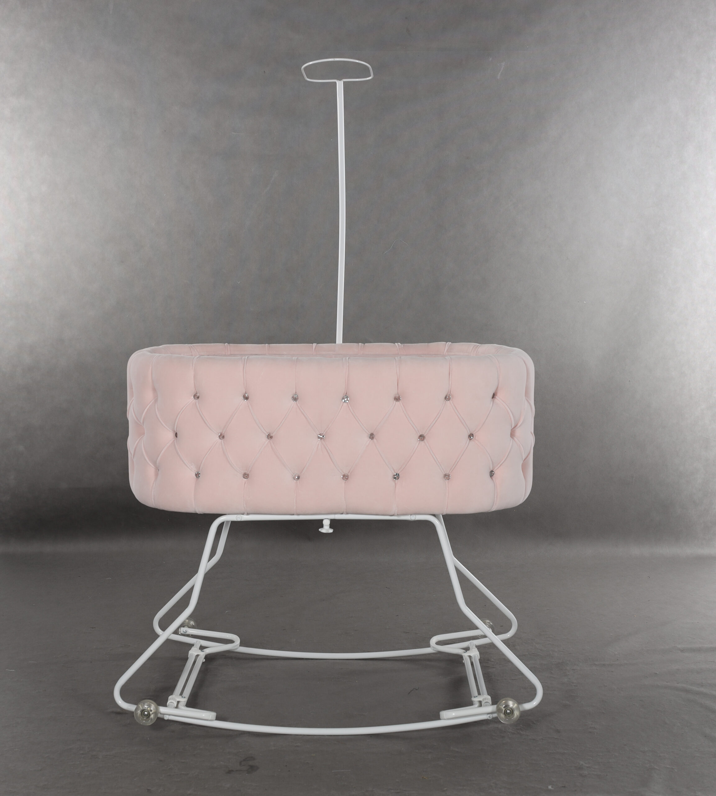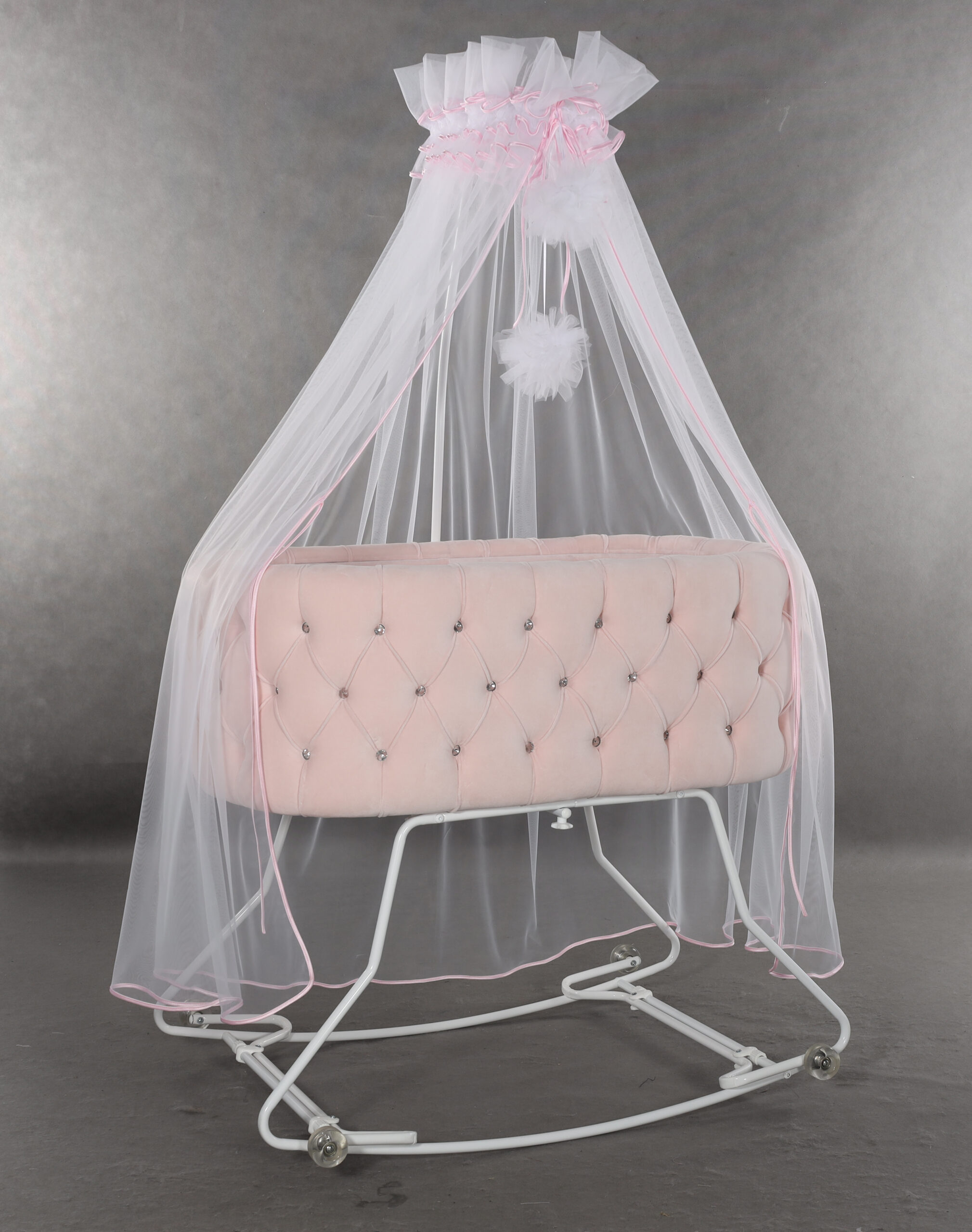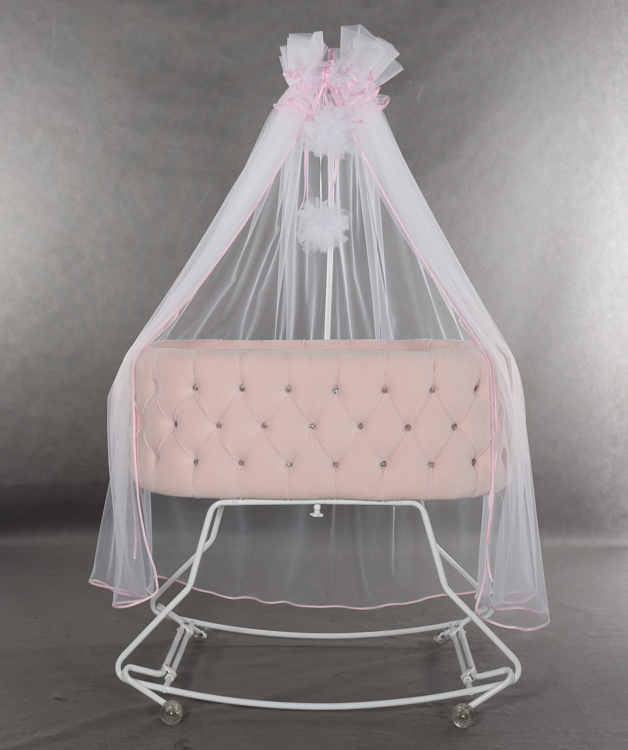 - El diseño de la cuna es refinado y tiene una ligera función de balanceo. La cuna irradia lujo y belleza debido al patrón oro con un elegante crossover.