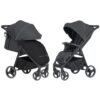 El cochecito se pliega rápidamente, con el tejido en el interior, y mantiene una posición vertical sin ningún apoyo.